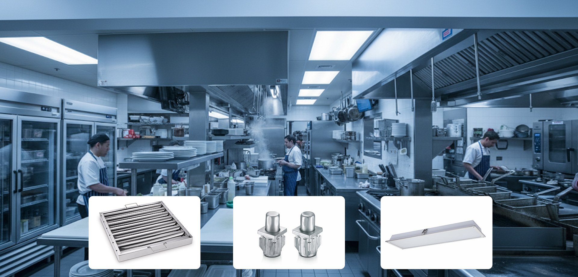 The kitchen oil filter is one of the key components in a range hood, mainly designed to filter grease from the cooking fumes.